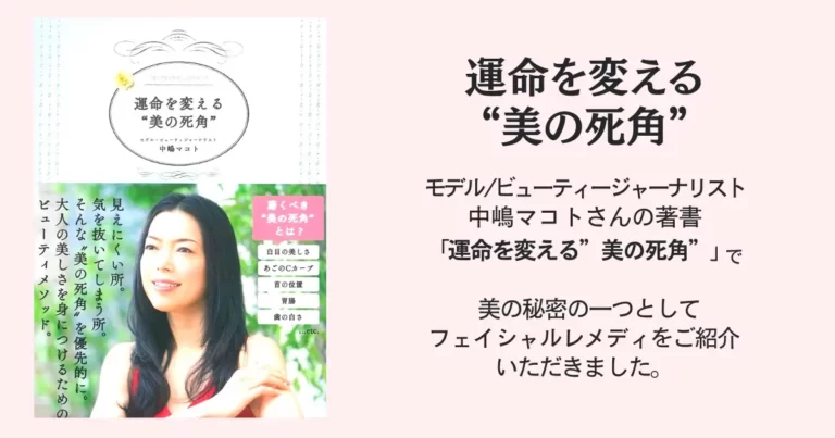 モデル/ビューティージャーナリストの 中嶋マコトさんが、美容賢者の美肌を守るエイジングサイン別切り札ケアで、「フェイシャルレメディ®を月一回受け小顔効果が長持ち、内臓までも整えてくれます。」と、ご紹介していただきました。