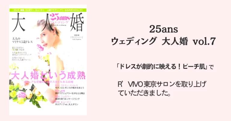 「ドレスが劇的に映える!ピーチ肌」で、R’VIVO 東京サロンを取り上げていただきました。